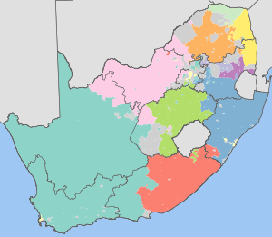 - Cap-Oriental (Eastern Cape) : Bantoustans indépendants du Transkei, du Ciskei et sud-est de l'ancienne province du Cap,