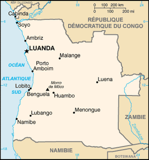 L'Angola, en forme longue la République d'Angola, en portugais República de Angola, est un pays du sud-ouest de l'Afrique, limitrophe de la République démocratique du Congo, la République du Congo, la Namibie et la Zambie.