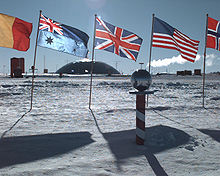 L'Année polaire internationale (API) (1882-1883) et l'Année géophysique internationale (AGI) (1957-1958) vont soulever un certain nombre de questionnements politiques et économiques que les États projettent sur l'Antarctique. Ainsi va naître le traité sur l'Antarctique qui donne à ce continent son statut unique conçu pour la science, aux actions pacifiques, à la préservation des ressources naturelles ainsi qu'à la protection de la biodiversité. Signé le 1er décembre 1959 à Washington par douze pays soit l'Afrique du Sud, l'Argentine, l'Australie, la Belgique, le Chili, les États-Unis, la France, le Japon, la Norvège, la Nouvelle-Zélande, le Royaume-Uni et l'URSS (actuelle Russie), le traité compte à l'heure actuelle (2010), quarante-cinq États signataires. La Convention sur la conservation de la faune et la flore marines de l'Antarctique[22] en 1982, le protocole de Madrid en 1991 et des programmes de recherche internationaux comme le recensement de la vie marine de l'océan Austral (2003-2010) ou bien l'ARENA (Antarctic Research, a European Network for Astrophysics) illustrent la volonté des États de poursuivre les objectifs établis en 1959.