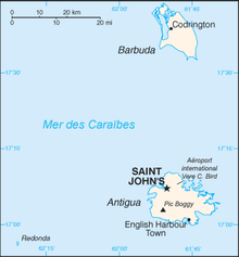 Antigua-et-Barbuda est un pays des Antilles ; sa capitale est Saint John's. Cet État se compose de deux îles principales, l'île d'Antigua, connue aussi en français sous le nom d'Antigue et l'île de Barbuda, ou Barbude, et de quelques îles plus petites.