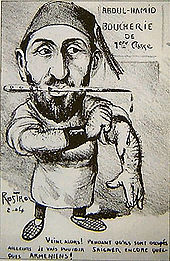 Pendant ce temps, l'Arménie (ou Grande-Arménie) est envahie par diverses tribus turques et devient l'objet de luttes entre l'Empire ottoman et l'Empire perse. À partir du XIVe siècle, elle reste sous domination turque. Les guerres reprennent en 1827, quand l'Empire russe commence à avoir des vues sur le nord de l'Arménie. À la fin du XIXe siècle, le territoire est partagé entre la Russie et l'Empire ottoman. C'est à cette époque, sous le règne du Sultan Abdülhamid II, que les Turcs se livrent aux premiers massacres contre le peuple arménien (1894-1896) vivant sur la partie du territoire qu'ils contrôlent, c'est-à-dire l'Asie Mineure orientale ou l'Arménie occidentale. Ces massacres firent entre 200 000 et 250 000 morts[5].