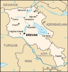 L'Arménie, en forme longue la République d'Arménie, en arménien Hayastan, ???????? et Hayastani Hanrapetut'yun, ????????? ???????????????, est un pays du Caucase sans accès à la mer. Cette ancienne république soviétique a des frontières terrestres avec la Turquie à l'ouest , la Géorgie au nord, l'Azerbaïdjan à l'est et l'Iran au sud. Quoique localisée en Asie, l'Arménie est reconnu par certains auteurs comme faisant culturellement, historiquement et politiquement parlant, partie de l'Europe[1], [2]. Elle est membre de plus de trente-cinq organisations internationales, comme l'ONU, le Conseil de l'Europe, la Communauté des États indépendants, etc. Elle est aussi un membre permanent de l'organisation internationale de la francophonie[3].