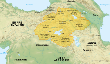 La région est ensuite envahie par les Arabes, qui établissent l'Émirat d'Arménie. Vers l'an 885, la dynastie Bagratide s'impose en Arménie, et l'indépendance du pays est alors reconnue. À l'époque, l'Arménie a comme capitale la ville d'Ani, qui, avec une population surpassant celle des métropoles européennes comme Paris, Londres et Rome, devient le centre culturel, religieux et économique du Caucase.