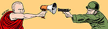 Depuis le 5 septembre 2007, où des moines bouddhistes ont été frappés par des miliciens de la junte birmane lors d'une manifestation à Pakokku, à 500 kilomètres au nord de Rangoon, un mouvement de protestation des bonzes s'est développé à travers toute la Birmanie. Ce mouvement fait suite à des manifestations organisées depuis le 19 août 2007 à Rangoon pour protester contre l'augmentation massive des prix des carburants et des transports en commun. Lancé par des membres de l'opposition de la Ligue Nationale pour la Démocratie, il est dirigé par Aung San Suu Kyi, en résidence surveillée depuis 10 ans[15], [16].