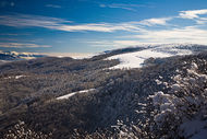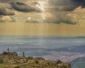 Panorama sur la plaine de Thrace et la ville de Sliven (Bulgarie) d'un promontoire du Grand Balkan. |