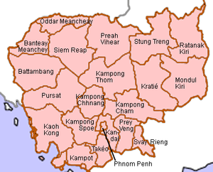 Le Cambodge contemporain comprend 20 provinces et 4 municipalités (*) :