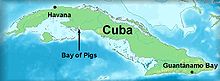 Par la suite, du 17 au 19 avril 1961 eut lieu la fameuse tentative de débarquement à la baie des Cochons de 1 400 réfugiés, recrutés, payés et entraînés par la CIA américaine, qui se solda par un échec. Les États-Unis mirent alors en place un embargo économique en 1962, mais renoncèrent à toute invasion de Cuba aux termes d'un accord signé pour conclure l'affaire des missiles de Cuba. Le pays fut longtemps soutenu par l'URSS qui lui accordait une aide (4 à 6 milliards de dollars américain par an jusqu'en 1990) en échange de son alignement sur sa politique (envoi de forces cubaines dans plusieurs pays d'Afrique pour protéger des gouvernements communistes ou déstabiliser ceux du camp adverse, soutien aux mouvements révolutionnaires d'Amérique latine). Cuba fait face à une grave crise économique depuis la disparition du «grand frère soviétique».