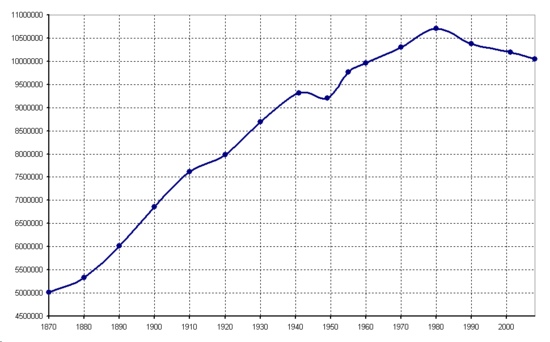 La population décroit depuis le début des années 1980. Il est estimé qu'elle comptera six à sept millions d'habitants vers 2050. [réf. nécessaire]