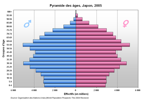 - (en) En 2010, le taux d'accroissement démographique au Japon est négatif à -0.191%, et le taux de fertilité est estimé à 1, 2 enfant par femme, selon The World Factbook, CIA (2010) .