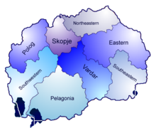 Depuis août 2004, ces régions sont divisées en 85 municipalités (opštini; au singulier opština), dont 10 forment le Grand Skopje. Avant le redécoupage de 2004, il y avait 123 municipalités. Elles avaient été créés en septembre 1996. Avant cela, le gouvernement local était organisé en 34 districts administratifs.