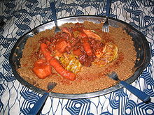 La cuisine mauritanienne se compose de produits locaux tels que le mil, le blé, l'orge, le haricot, la pastèque, les dattes etc. C'est par conséquent une cuisine typique des peuples du Sahel. Les plats les plus connus sont à base de 2 variétés de couscous couramment nommé petit cous cous et gros couscous, et , "fondé", "Makhafo", El aiche, Baci, sakou, Echerchem, Leglyé, Bellakh, Belleghmane, Hacou, lemvassas, etc. [38]