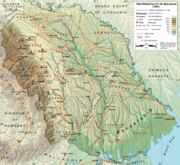 - En 1367, la Bessarabie jusque-là valaque est rattachée à la Moldavie (mais à l'époque, le nom de Bessarabie sert à désigner uniquement les rivages du Danube et de la Mer Noire libérés des Tatars par la dynastie valaque des Basarab : cette région est désormais nommée Boudjak) ;