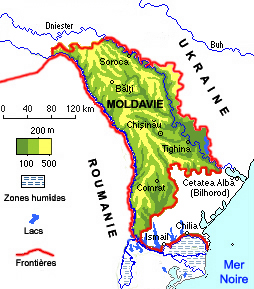 La Moldavie est située en Europe orientale. D'une superficie de 33 843 km², la Moldavie couvre sur 450 km du nord au sud et 200 km d'est en ouest .