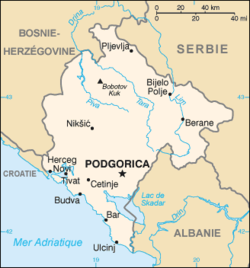 Le Monténégro (en monténégrin ou serbe, Crna Gora, en serbe cyrillique, Црна Гора, prononcé [ˈt͡sr̩naː ˈɡɔra], de l'italien Montenegro) est un pays d'Europe du Sud bordé par la mer Adriatique et frontalier de la Croatie, de la Bosnie-Herzégovine, de la Serbie, du Kosovo[1] et de l'Albanie. Les villes principales sont la capitale Podgorica (Titograd de 1945 à 1992) avec 170 000 habitants, Nikšić (75 000) et Pljevlja (37 000). L'ancienne capitale royale est Cetinje qui détient aussi le titre de «capitale de trône» (prestonica).