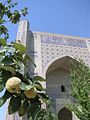 Vue de la façade de la mosquée Bibi Khanoum à Samarcande |