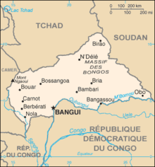 La République centrafricaine, aussi nommée Centrafrique, en sango Ködörösêse tî Bêafrîka, est un pays sans accès à la mer d'Afrique centrale, entouré par le Cameroun à l'ouest, le Tchad au nord, le Soudan à l'est, la République démocratique du Congo et le Congo au sud.