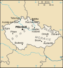 - Le terme est référencé dans la revue de politique française et internationale, L'Europe nouvelle, dans une conversation entre Édouard Daladier et Georges Bonnet, alors ministre des Affaires étrangères, où celui-là reproche à ce dernier d'utiliser ce mot «allemand» qui traduit alors Tschechei.