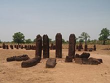 La métallurgie se développe à l'époque protohistorique (premier millénaire avant J. -C. ), où on retrouve des tombeaux en forme de tumulus. Dans le centre du pays, débordant sur l'actuelle Gambie, on trouve un ensemble de cercles de mégalithes sur un secteur de 100 km sur 250 km. On retrouve ce type d'alignement dans le nord est de la république centrafricaine.