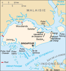 Singapour se situe entre la Malaisie au nord et l'Indonésie au sud. Cette île est reliée à la péninsule malaise par deux ponts. Le premier, qui est aussi nommé «chaussée» (Johor–Singapore Causeway), arrive à la ville frontalière de Johor Bahru en Malaisie. Le second (Malaysia–Singapore Second Link ), à l'ouest , connecte la périphérie de Johor Bahru aux quartiers de la région de Tuas.