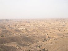 Les terres cultivées représentent 4, 9 millions d'hectares dont 1, 6 consacré à la culture des céréales, 1, 6 consacré à la culture de l'olivier et 400 000 hectares consacrés aux cultures irriguées. Le désert du Sahara occupe une superficie comprise entre 33 % et 40 % du territoire selon qu'on le définisse selon son aridité ou selon des caractéristiques paysagères.