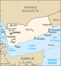 Le Yémen, en forme longue la République du Yémen, en arabe al-Yaman, ??????? et Al-Jumhuriyah al-Yamaniyah, ?????????? ???????, est un pays arabe localisé à la pointe sud-ouest de la péninsule d'Arabie. Sa capitale est Sanaa. Elle possède des façades maritimes sur le golfe d'Aden et sur la mer Rouge. Les pays frontaliers du Yémen sont le royaume d'Arabie saoudite au Nord et Oman à l'Est . Le Yémen couvre une superficie totale de 527 970 km² (France métropolitaine : 551 500 km²). Plusieurs îles font partie du territoire yéménite : l'île de Kamaran en mer Rouge, l'îlot de Perim qui commande l'accès à la mer Rouge par le détroit de Bab-el-Mandeb, et l'île de Socotra (la plus grande des îles) dans l'océan Indien.