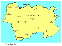 Depuis 1739 et le retour du contrôle ottoman sur la région de Belgrade, les autorités ottomane et le sultan Selim III encourageaient l'autonomie locale des Serbes et finançait ses milices afin d'assurer une certain ordre. Cependant, suite à l'alliance des Serbes avec les Habsbourgs au cours de la guerre de 1788-1791 (ou guerre de Koča), et face à la crainte du Sultan d'une alliance chrétienne menée par la France de Napoléon contre l'Empire ottoman[Hupchick 3], Selim confisque les armes des milices serbes et les janissaires reprennent le contrôle des provinces serbes en 1801. En 1802, le premier soulèvement serbe débute par une révolte locale contre les janissaires menée par Đorđe Petrović dit Karađorđe, Đorđe le noir, mais en 1804, tandis que Selim fait assassiner la plupart de leaders locaux[Lampe 2], la répression ottomane transforme ce qui n'était qu'une révolte locale en un mouvement national populaire[Hupchick 4] ayant pour but de se séparer de la domination de l'empire. En 1806 les troupes de Karađorđe, soutenues matériellement par la Russie du Tsar Alexandre, prennent Belgrade. L'attaque de la Russie et de l'Angleterre contre l'Empire ottoman allié de Napoléon pousse Selim à proposer l'autonomie aux Serbes mais Karađorđe refuse et signe une alliance avec la Russie en 1807. Cependant en 1807 avec le Traité de Tilsit puis en 1812 avec le Traité de Bucarest la Russie cesse ses attaques contre l'Empire ottoman laissant ce dernier libre de mater la rebellion serbe. En 1813, Karađorđe fuit en Autriche et les ottomans ont repris le contrôle des territoires serbes.