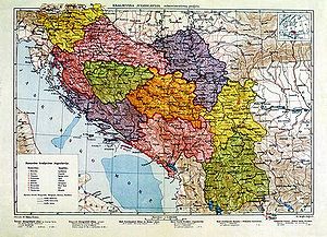 - la Voïvodine (auparavant hongroise), surtout de langue serbo-croate et orthodoxe, mais avec d'importantes minorités allemandes (la plus nombreuse à l'époque), magyares, roumaines et autres.